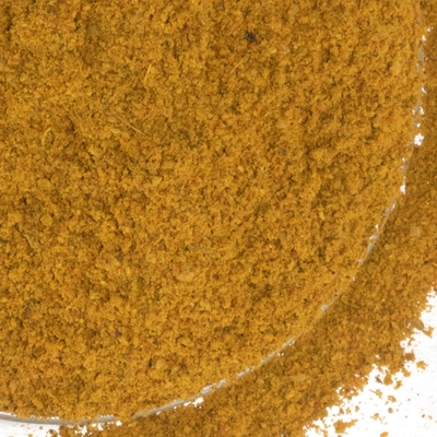 Hand blended from fenugreek, turmeric, yellow mustard, black pepper, cardamom, cumin, coriander, fennel, cayenne, cinnamon, clove, nutmeg, ginger and saffron.
